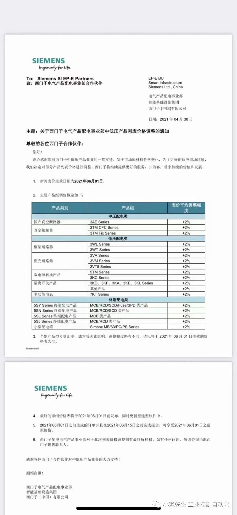 关于西门子电气产品配电事业部中低压产品列表价格调整的通知