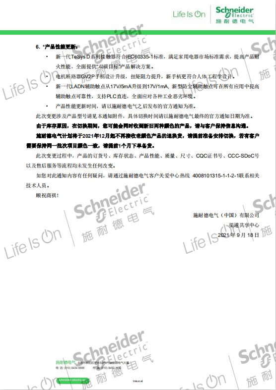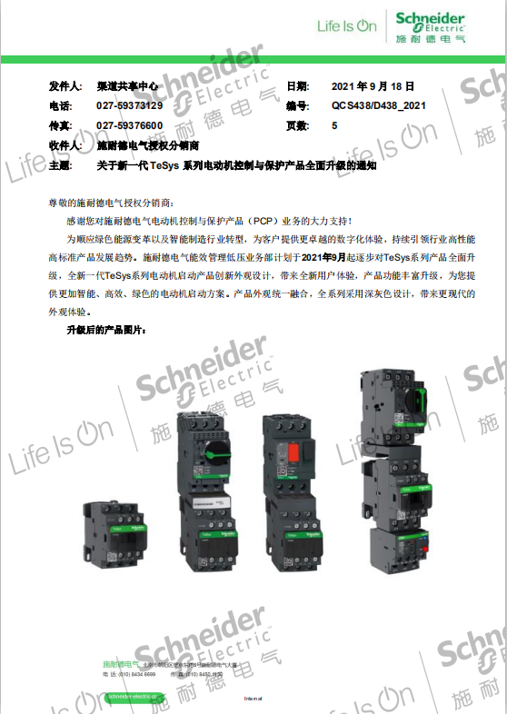 关于新一代TeSys系列电动机控制与保护产品全面升级的通知