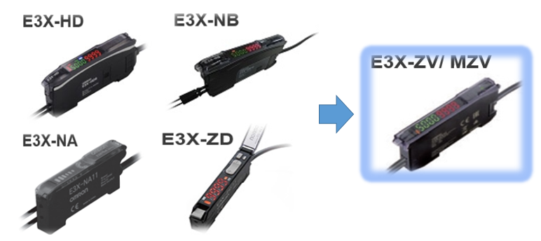 欧姆龙推出了光纤放大器E3X-ZV系列,型号E3X-ZV11 2M BY OMS、E3X-MZV11 2M BY OMS,可替换以下系列产品: