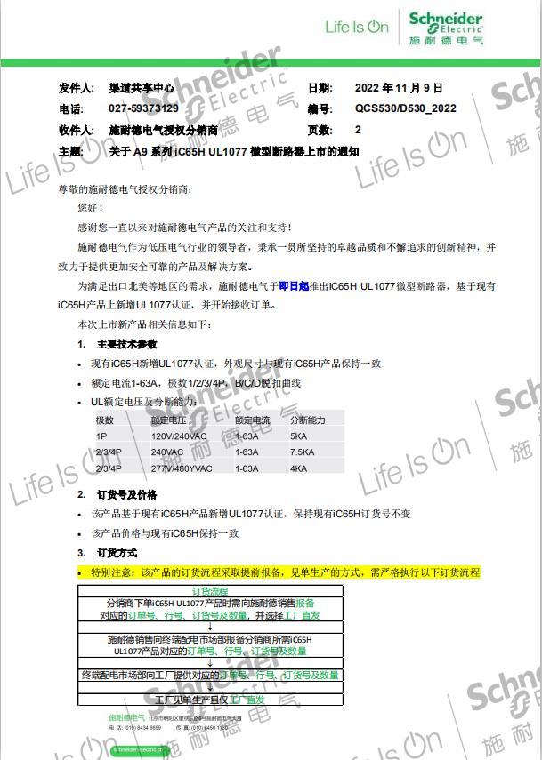 关于A9系列iC65H UL1077微型断路器上市的通知