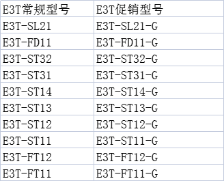 本财年欧姆龙E3T系列小型光电推出了定制促销品E3T-G(代表中国的意思,和E3ZG一样) 以下为E3T常规型号与定制促销的十个对应型号: